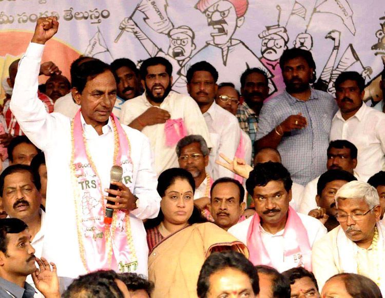 TRS supremo KCR addressing a huge gathering at Samara Deeksha held by TJAC at Indira Park here on Monday - INN Photos