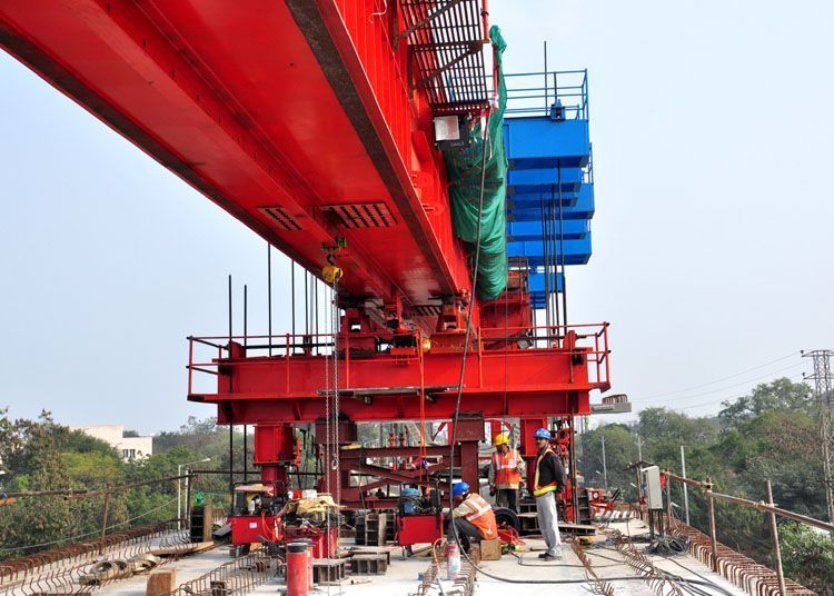 Hyderabad Metro Rail (HMR) pillars (piers) construction work is going on at a brisk pace. A view of the elevated track under construction beween Nagole and Mettuguda.