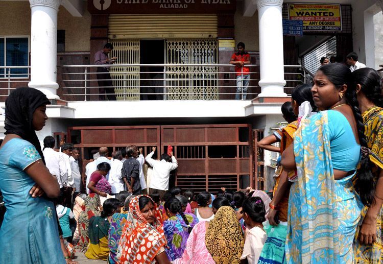 As goverment initiates steps for Direct Cash Transfer to benificiaries of various welfare schemes people in large number gathers at one of the SBI branches in the city on Thursday to avail subsidies. -INN Photos