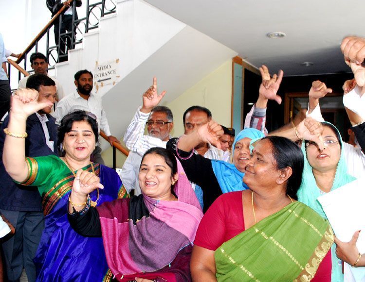 GHMC corporators of all parties protest in the GHMC Headquarters at Tank Bund here on Saturday - INN Photos