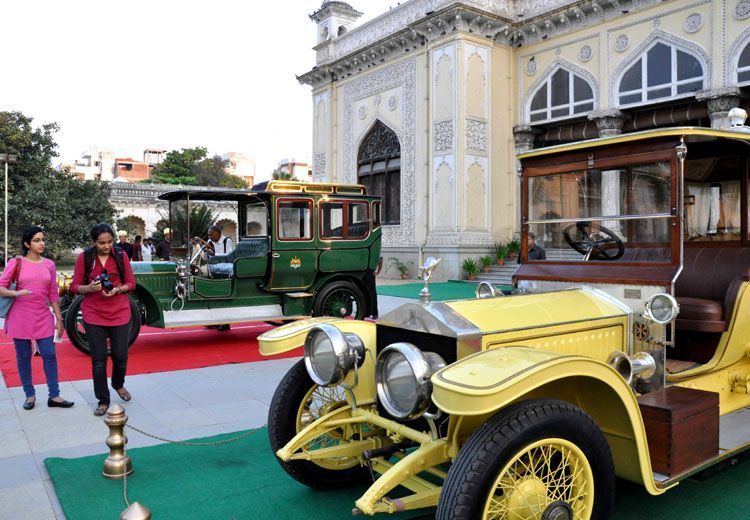 World famous Napier cars of sixth Nizam Mir Mahboob Ali Khan put up on show at Chowmala Palace in Hyderabad - INN Photos