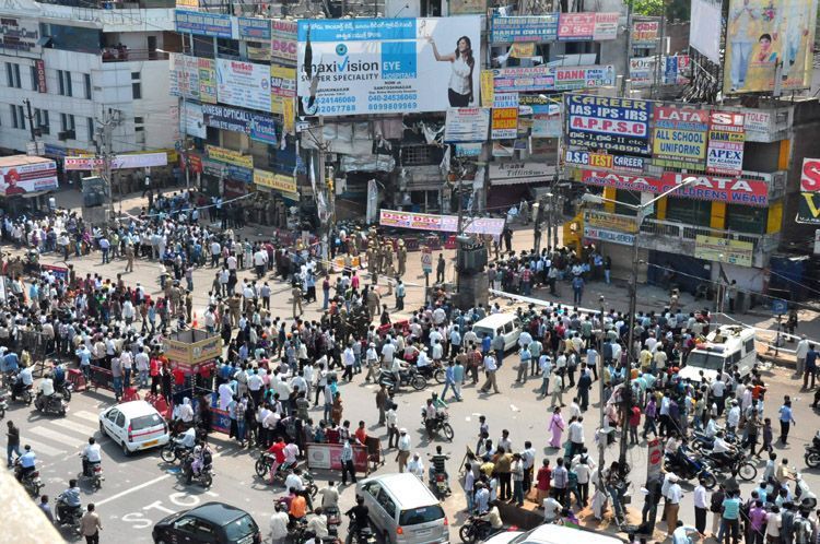 The day after bomb blasts- People throng twin bomb blasts site in Dilsukhnagar as police, para military, intelligence and probe agencies personnel involved in maintaining law and order in view of the VVIP visits the site - INN Photos