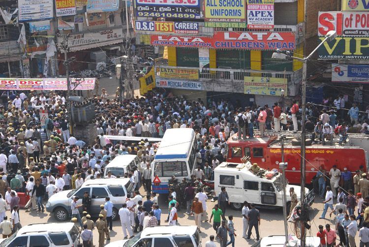 The day after bomb blasts- People throng twin bomb blasts site in Dilsukhnagar as police, para military, intelligence and probe agencies personnel involved in maintaining law and order in view of the VVIP visits the site - INN Photos