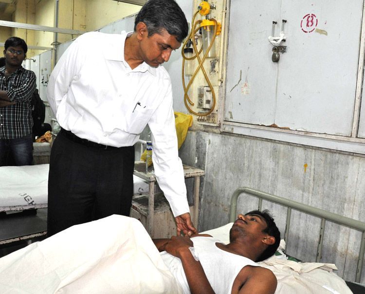 Lok Satta president Dr Jaya Prakash Narayan visits Osmania General Hospital on Friday to console bomb blast injured- INN Photos