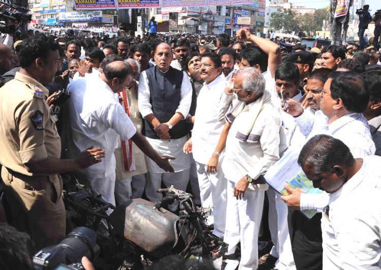 BJP National President Rajnath Singh visits Disukhnagar blast site, hospital and later addresses a presser here on Friday - INN Photos