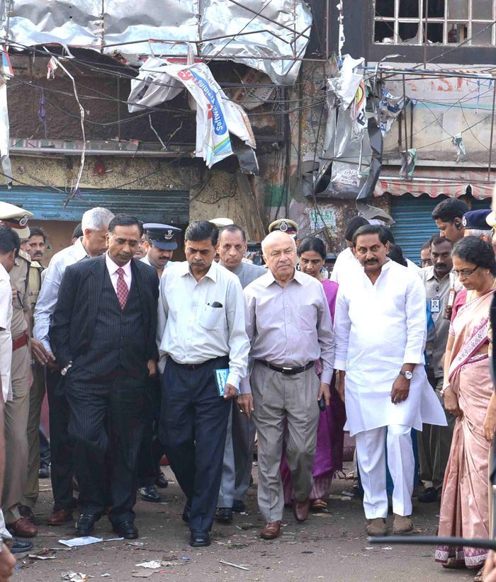 Union Home minister Sushil Kumar Shinde, Governor ESL Narasimhan, Chief Minister N.Kiran Kumar Reddy, minister Sabitha Indra Reddy and Geeta Reddy visit the twin bomb blasts site at Dilsukhnagar on Friday.
