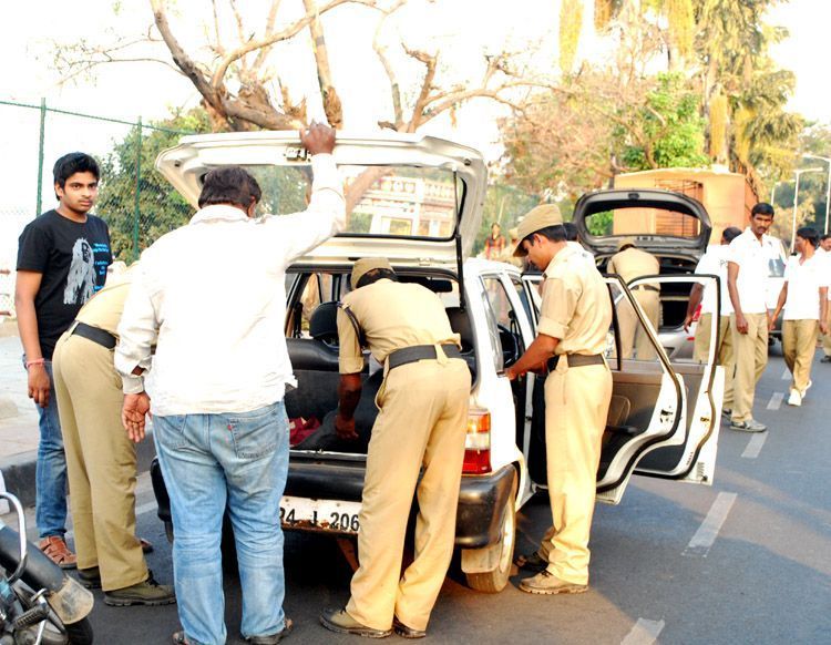 Police conducting vehicle check at Necklace Road here on Tuesday - INN Photos