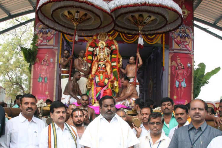On the Sixth day of ongoing Brahmotsavam at TTDs Sri Kalyana Venkateswara Swamy Temple in Srinivasa Mangapuram near Tirupati, the processional deity of Lord Kalyana Venkateswara Swamy is taken out in procession around four mada streets atop Hanumantha Vahanam on March 6th, Wednesday morning.