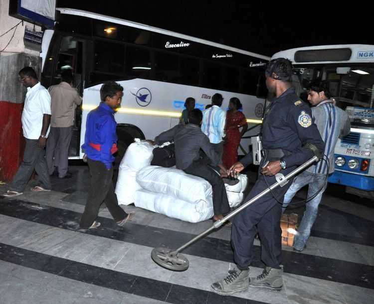 Octopus Commandos checking passengers and goods at Mahatma Gandhi Bus Station here on Wednesday - INN Photos