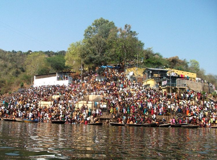Devotees having a holy bath at a ghat in river Krishna in Srisailam on the occassion of Maha Sivaratri on Sunday. Nearly seven lakh devotees throng Srisailam temple for darshan.
