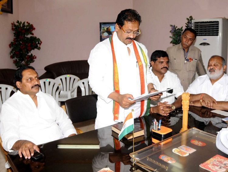 Congress MLC candidates Lakshmi Siva Kumari, Mohammed Shabbir Ali and Kolagatla Veerabhadra Swamy filing their nomination papers on Monday as Chief Minister Kiran Kumar Reddy and PCC chief Botsa Satyanarayan and other ministers looks on at Assembly secretariat.