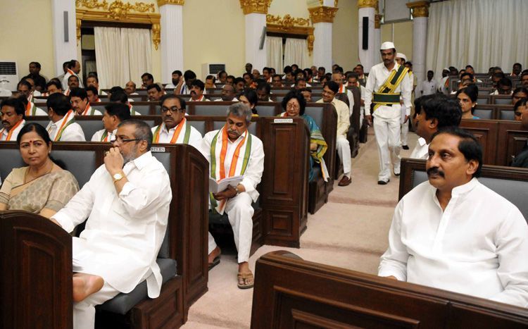 Chief Minister N.Kiran Kumar Reddy listening to Governors address of the joint session of Legislative Assembly and Council to begin the budget session here on Wednesday - INN Photos