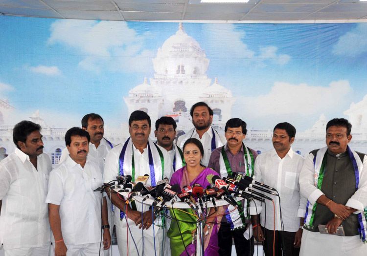 YSR Congress party MLAs speaking to press at media point in the Assembly premises on Thursday.