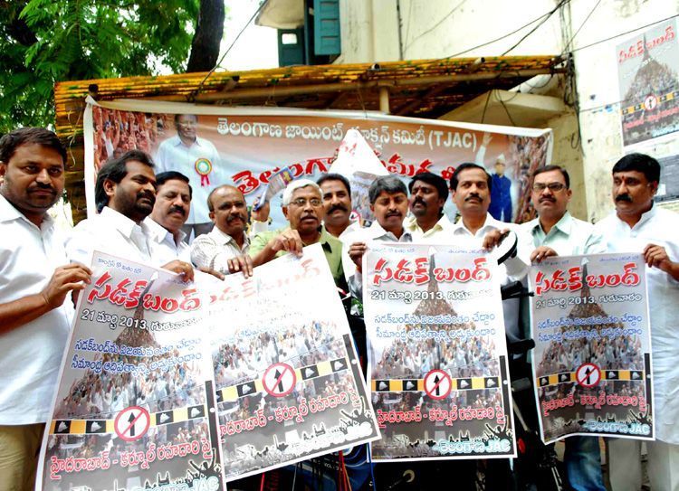 Telangana JAC Convener Prof M Kodandaram and other leader leaders releases poster of Sadak Bandh to be held on March 21 here on Tuesday - INN Photos