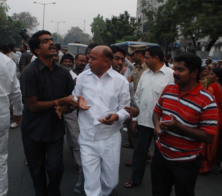 TDP activists protest at Electricity Department Headquarters Vidyut Sowdha on Saturday, March 23rd. Telugu Desam Party Hyderabad City President Talasani Srinivas Yadav led these protests against power-cuts.