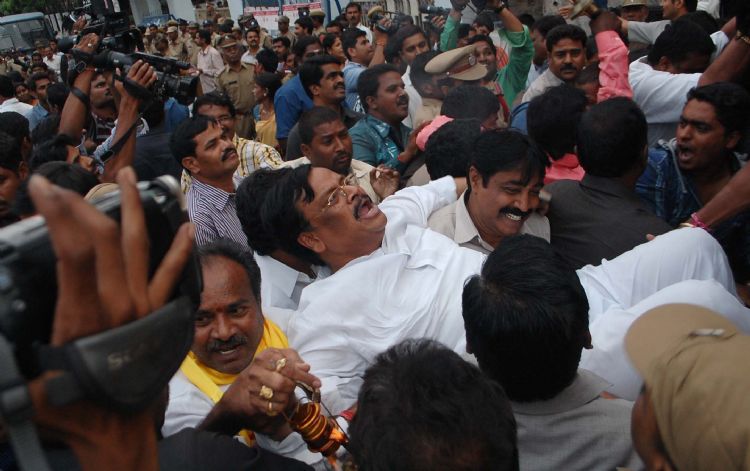 TDP activists protest at Electricity Department Headquarters Vidyut Sowdha on Saturday, March 23rd. Telugu Desam Party Hyderabad City President Talasani Srinivas Yadav led these protests against power-cuts.