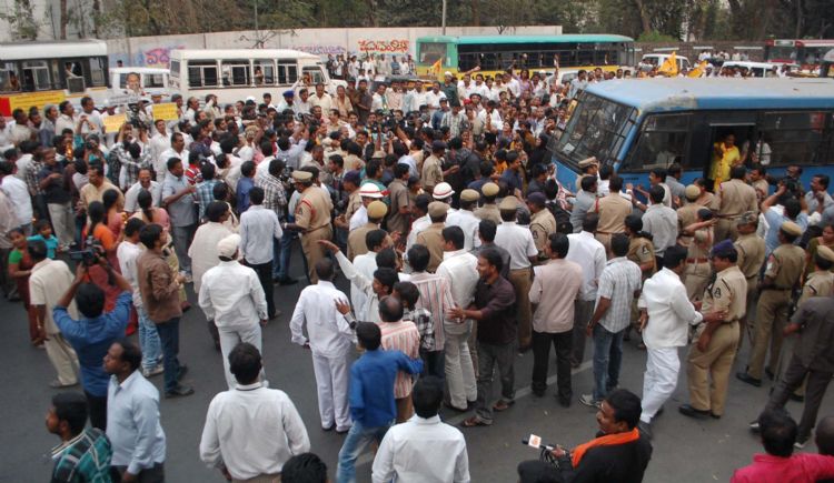 TDP activists protest at Electricity Department Headquarters Vidyut Sowdha on Saturday, March 23rd. Telugu Desam Party Hyderabad City President Talasani Srinivas Yadav led these protests against power-cuts.