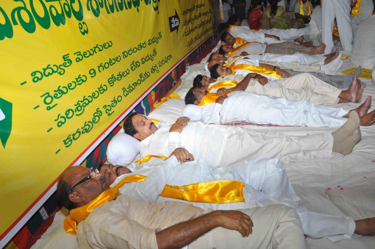 TDP Legislatures demostration eith empty pots in protest agaisnt the scarcity of drinking water and