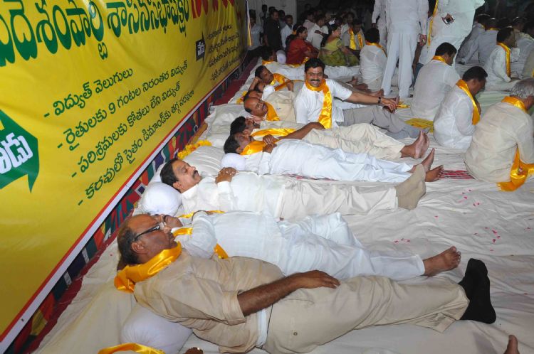 Back to TDP Legislatures demostration eith empty pots in protest agaisnt the scarcity of drinking water and