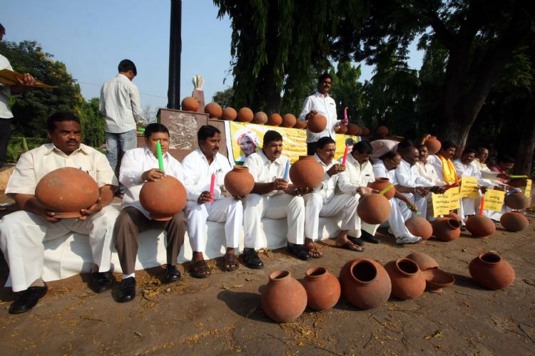TDP Legislatures demostration eith empty pots in protest agaisnt the scarcity of drinking water and