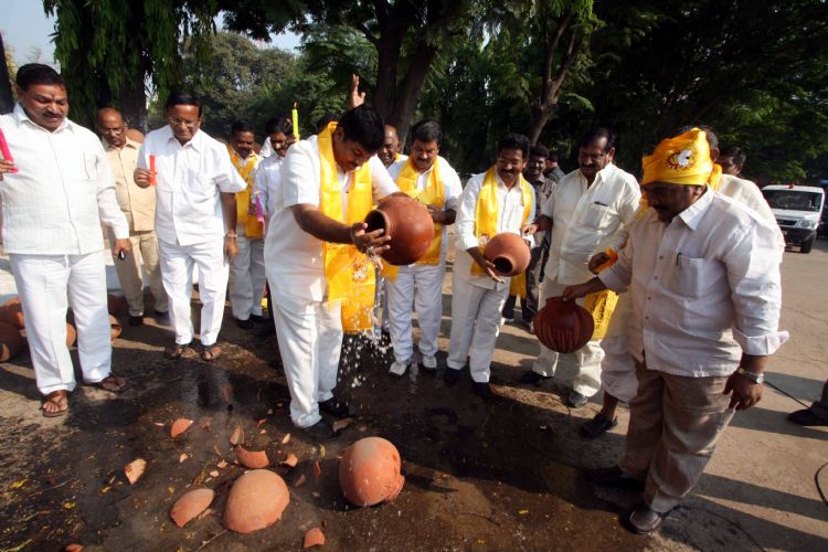 TDP Legislatures demostration eith empty pots in protest agaisnt the scarcity of drinking water and
