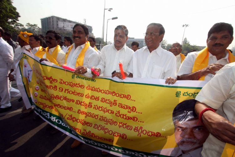 TDP Legislatures demostration eith empty pots in protest agaisnt the scarcity of drinking water and