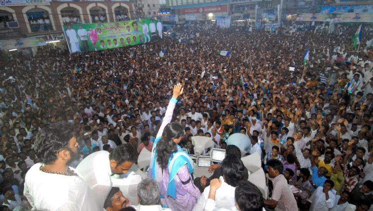 Back to Sharmila at public meeting at Vijayawada district during his Padiyatra