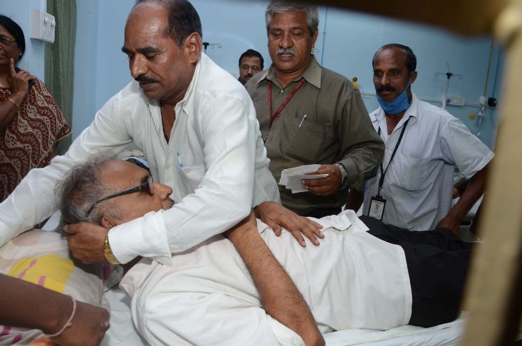 Police forcibly evicting fasting left parties leaders from Indira Park on Tuesday evening in Hyderabad