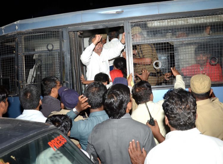 Police forcibly evicting fasting left parties leaders from Indira Park on Tuesday evening in Hyderabad