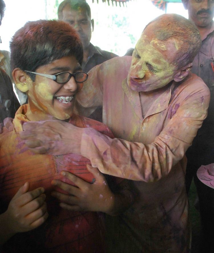 AP Governor Narshimham celebrating Holi at Raj Bhavan