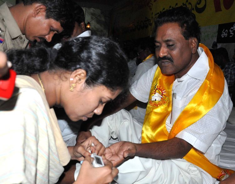 Doctors and para medics conducting medical check up on fasting TDP MLAs under the light if lantern here on Friday - INN Photos