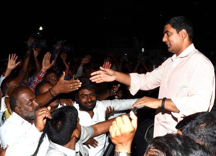 Nara Lokesh visits TDP MLAs' hunger strike camp at Old MLA Quarters here on Friday - INN Photos