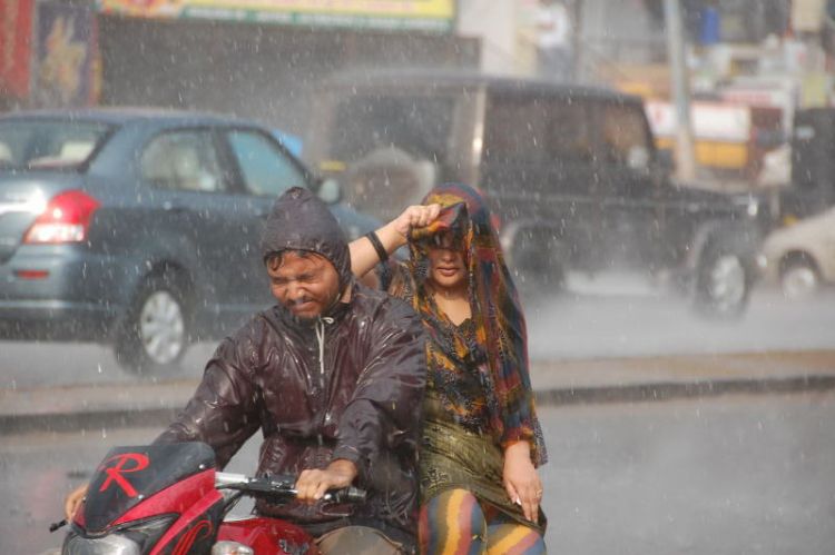 Citizens caught in sudden downpour that hit the city on Tuesday in Hyderabad