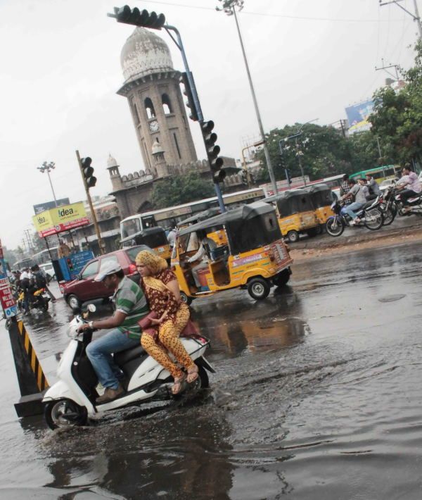 Citizens caught in sudden downpour that hit the city on Tuesday in Hyderabad