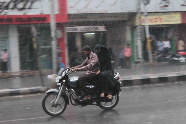 Citizens caught in sudden downpour that hit the city on Tuesday in Hyderabad