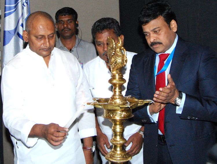 Chief Minister N. Kiran Kumar Reddy lighting the lamp at the inauguration of UNWTO conference at Hotel Hyatt, Jubilee Hills, Hyderabad on Friday as Minister of State for Tourism Chiranjeevi watches on.