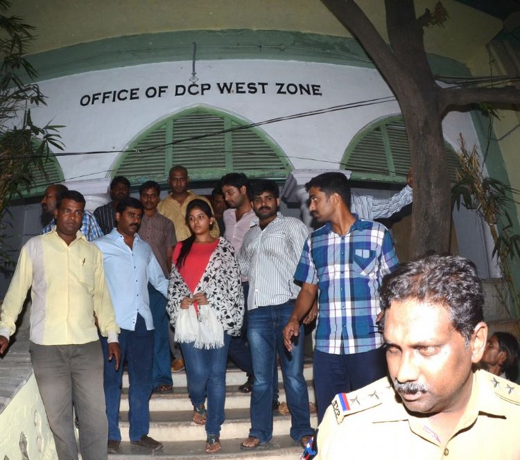 Film actress Anjali talking with mediapersons after coming out of the office of the deputy commissioner of police, west zone, in Hyderabad on Friday night.