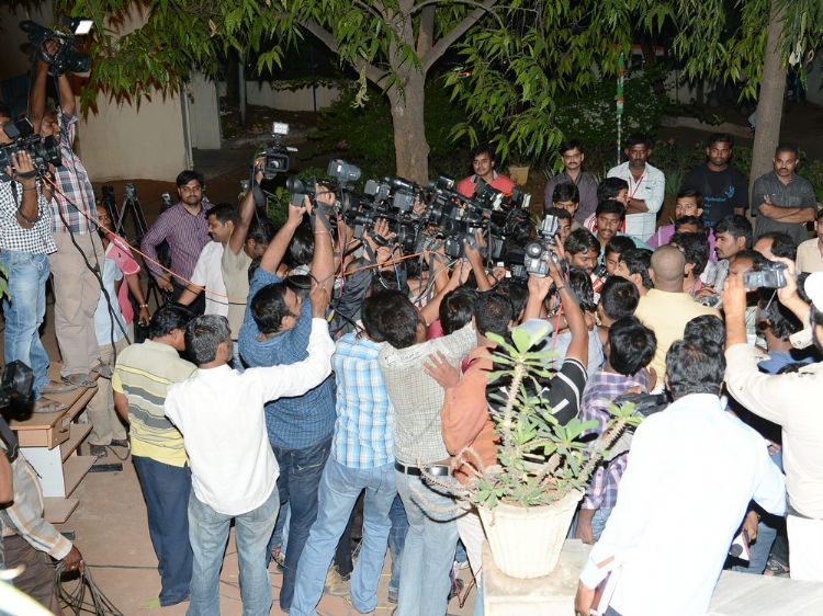 Film actress Anjali talking with mediapersons after coming out of the office of the deputy commissioner of police, west zone, in Hyderabad on Friday night.