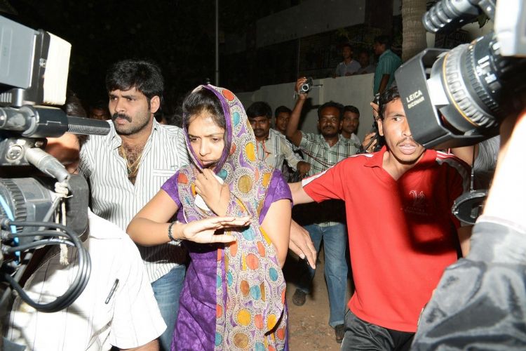 Film actress Anjali talking with mediapersons after coming out of the office of the deputy commissioner of police, west zone, in Hyderabad on Friday night.