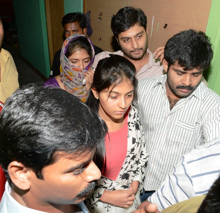 Film actress Anjali talking with mediapersons after coming out of the office of the deputy commissioner of police, west zone, in Hyderabad on Friday night.