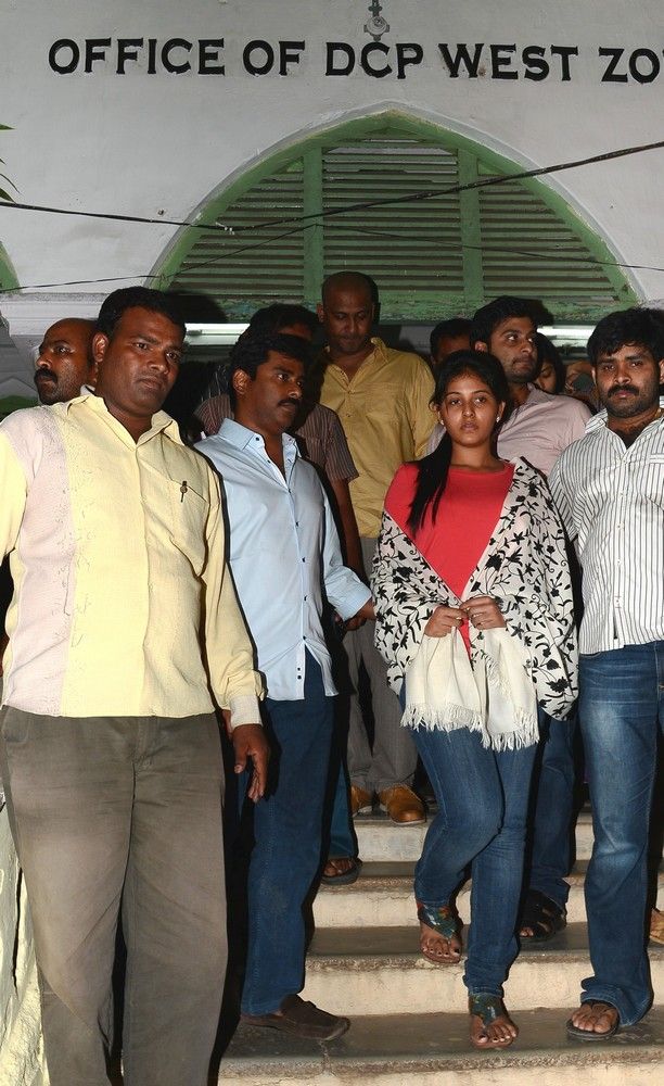 Film actress Anjali talking with mediapersons after coming out of the office of the deputy commissioner of police, west zone, in Hyderabad on Friday night.