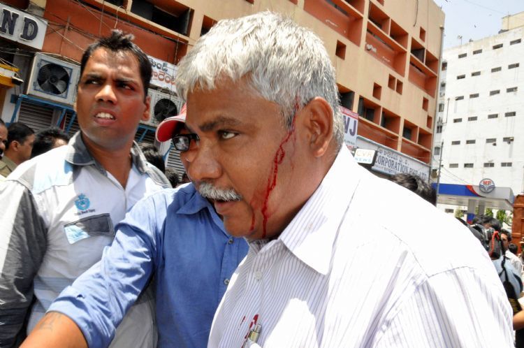 Several pro-Telangana journalists and students were injured and later arrested by the police after they opposed the release of book on United Andhra at an event organised by Visalandhra Mahasabha at Basheerbagh Press Club here on Wednesday - INN Photos