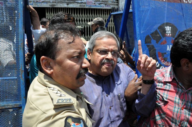 Several pro-Telangana journalists and students were injured and later arrested by the police after they opposed the release of book on United Andhra at an event organised by Visalandhra Mahasabha at Basheerbagh Press Club here on Wednesday - INN Photos