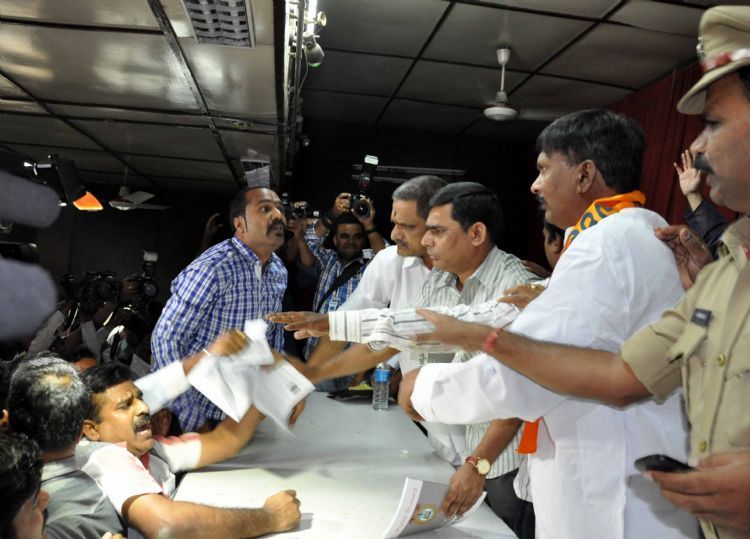 Several pro-Telangana journalists and students were injured and later arrested by the police after they opposed the release of book on United Andhra at an event organised by Visalandhra Mahasabha at Basheerbagh Press Club here on Wednesday - INN Photos