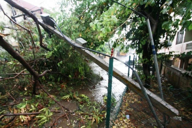 Sudden downpour in parts of Hyderabad on Monday caught commuters offgaurd. Heavy rains accompanied by gale winds disrupted normal life and inundated roads.