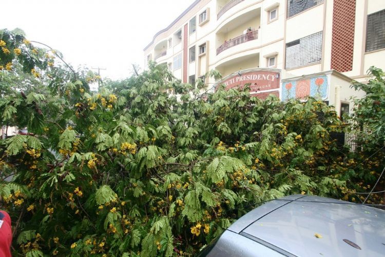 Sudden downpour in parts of Hyderabad on Monday caught commuters offgaurd. Heavy rains accompanied by gale winds disrupted normal life and inundated roads.