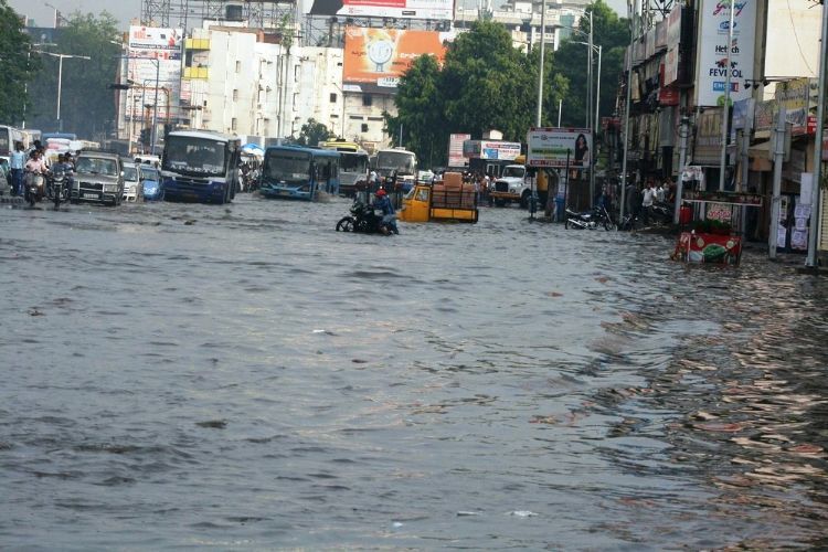 Sudden downpour in parts of Hyderabad on Monday caught commuters offgaurd. Heavy rains accompanied by gale winds disrupted normal life and inundated roads.
