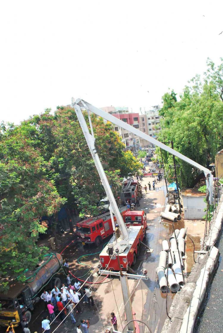 Huge fire broke out from Book Depot at near Abid Tilknager Road new Building also fully damage more then dozen firefighters vehicles control over five hors loss of property in the rupees of lakhs.