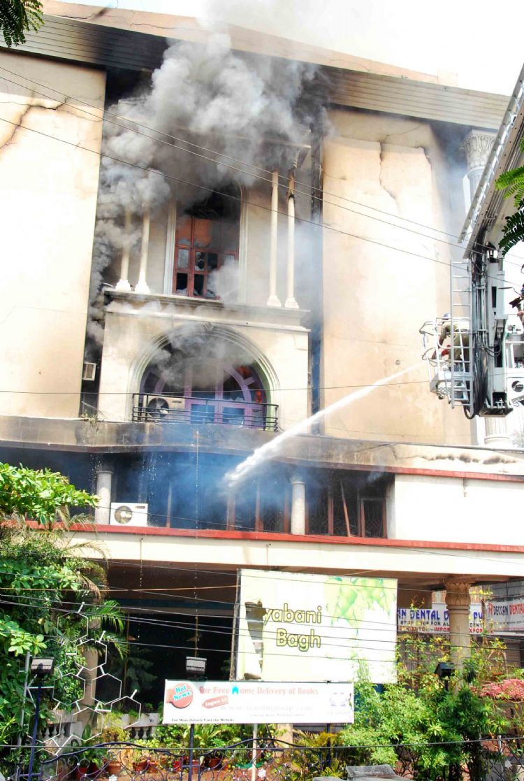 Huge fire broke out from Book Depot at near Abid Tilknager Road new Building also fully damage more then dozen firefighters vehicles control over five hors loss of property in the rupees of lakhs.