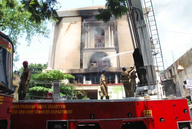 Huge fire broke out from Book Depot at near Abid Tilknager Road new Building also fully damage more then dozen firefighters vehicles control over five hors loss of property in the rupees of lakhs.